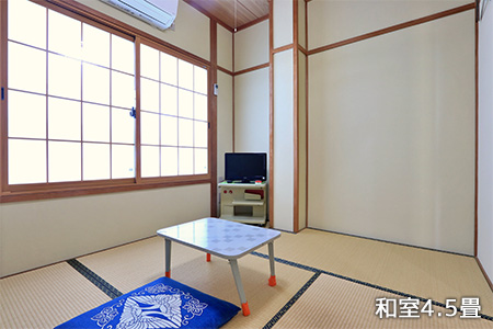 畳を傷つける事を気にされる事のないよう フローリング調のカーペットを 引いております。 また、車いすでも使いやすい 高さの机をご用意。 そのまま皆様とお寛ぎ頂けるお部屋です。